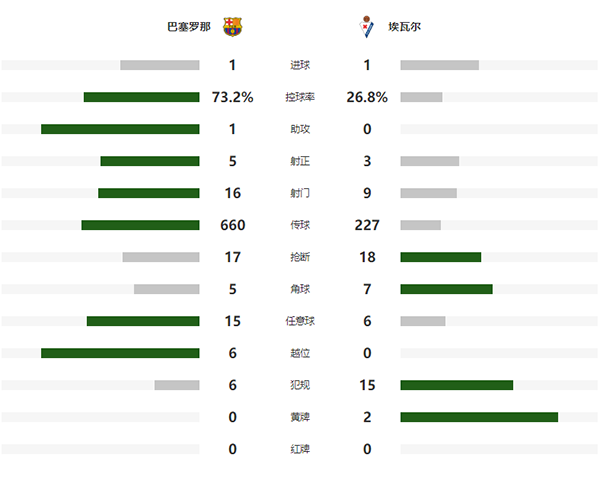 查看:巴塞罗那vs埃瓦尔 全场录像技术统计: