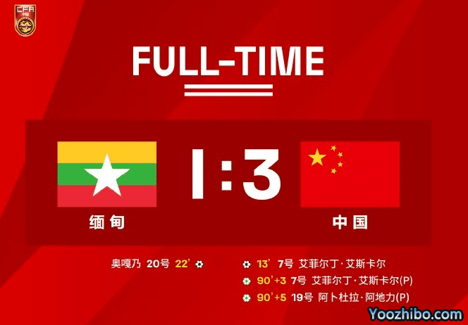 2022年9月,国青参加了U20亚洲杯预选赛,再次反映了与东南亚球队实力相当甚至要落后于越南、泰国等东南亚强队的困境,首轮比赛3-1击败了缅甸,过程非常艰难,艾菲尔丁虽然先为国青完成1粒进球,取得1-0领先,但是很快对手追平比分,直到比赛90分钟之后的补时阶段,中国男足才凭借刘国宝连造2个点球并且转化成进球的表现,惊险3-1取胜。
