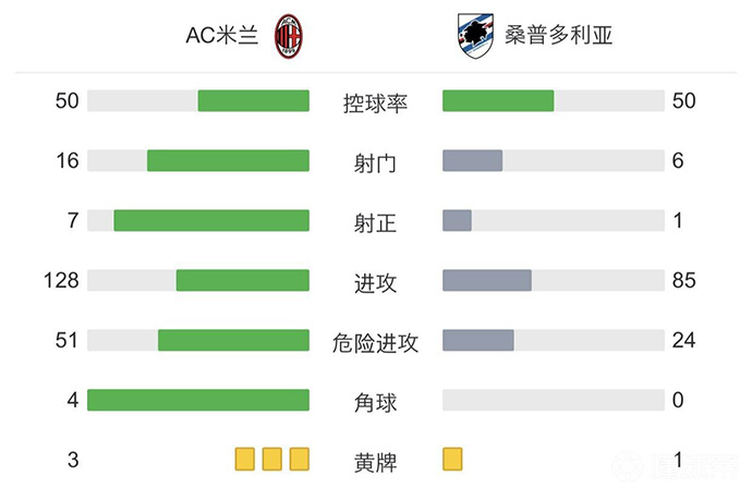 最终,AC米兰1-0桑普多利亚!