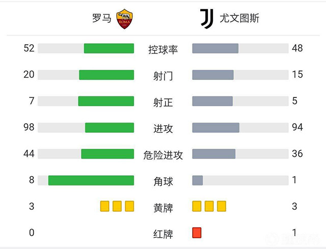 全场比赛结束,尤文图斯客场4-3逆转罗马。