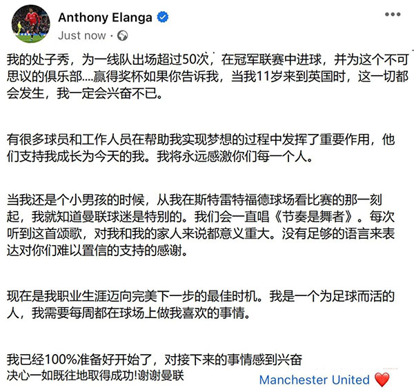 24直播网讯07月26日曼联与诺丁汉森林周二官方宣布,21岁的瑞典国脚埃兰加以1500万英镑的价格完成转会,他签署了一份为期5年的合同,身披21号战袍。这名12岁加盟曼联,2021年完成首秀并出场55次打入4球的快马,正式结束红魔生涯。