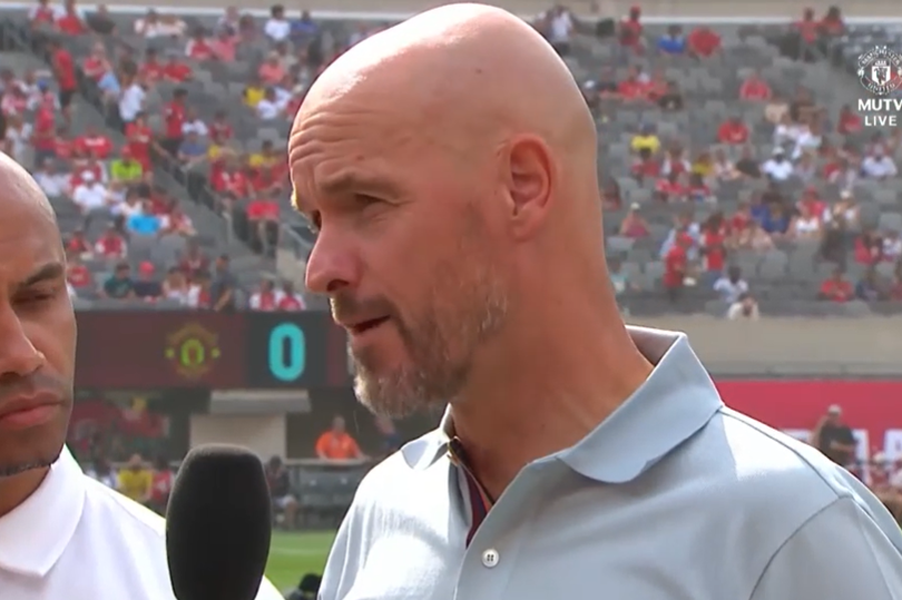 格雷泽和他的亲戚出现在平格里学校的球场边,主帅滕哈格与他握了握手,但并没有逗留很长时间,因为他需要指挥训练。滕哈格在上周五的新闻发布会上表示,曼联的季前赛美国之行是他会见格雷泽家族的好机会,但提及俱乐部的收购问题,53岁的荷兰人说那是俱乐部才能决定的事情。