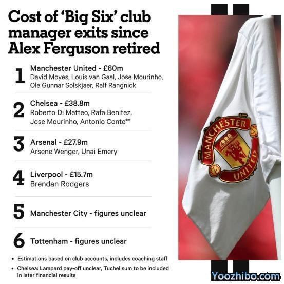 曼城解雇曼奇尼的费用和热刺解雇波切蒂诺以及穆里尼奥的费用则没有披露。
