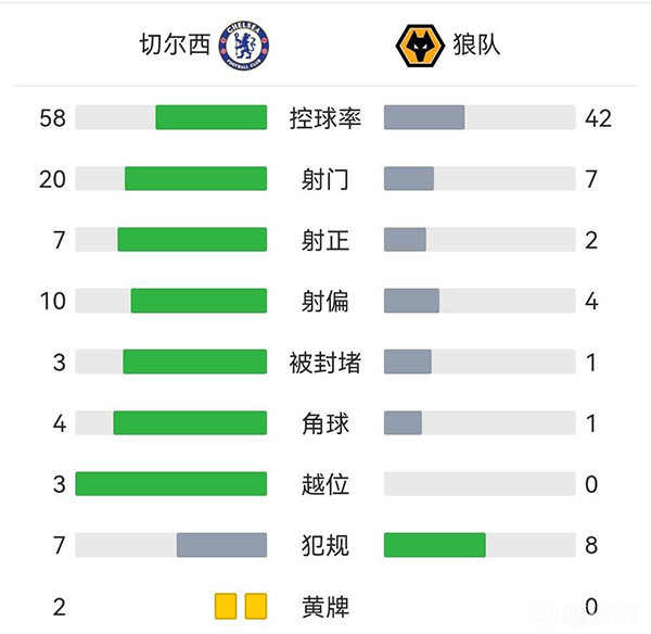 全场结束,切尔西3-0击败狼队。