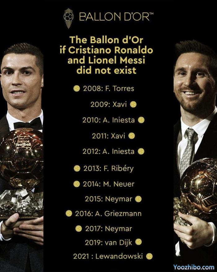 24直播网10月02日讯 消息,金球奖官方晒出了如果梅西C罗不参与评选的金球奖得主,哈维和内马尔两次获奖。