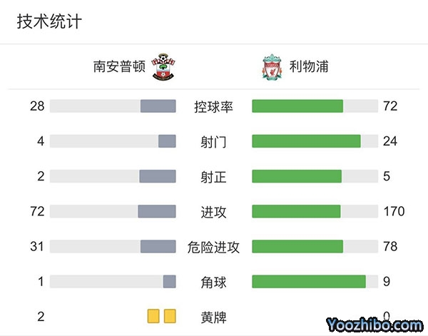 全场比赛结束,利物浦客场2-1逆转南安普顿。