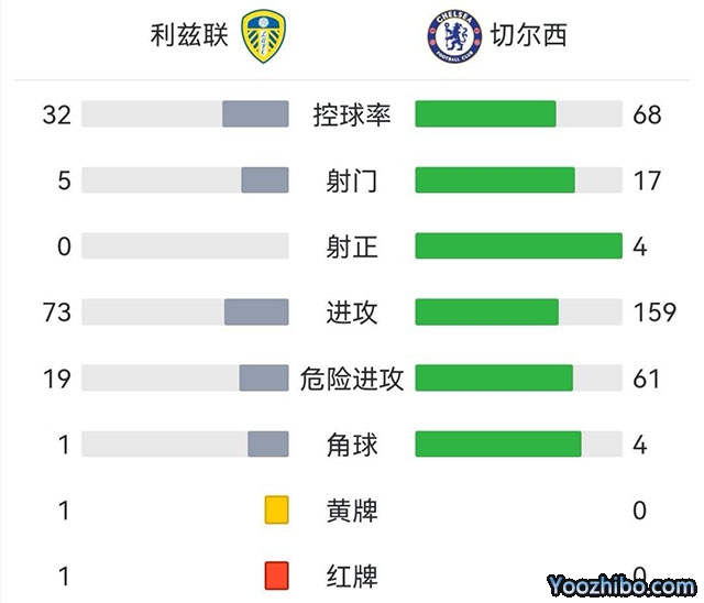 查看:利兹联vs切尔西 全场录像技术统计: