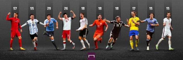 21世纪俱乐部和国家队帽子戏法次数排名: