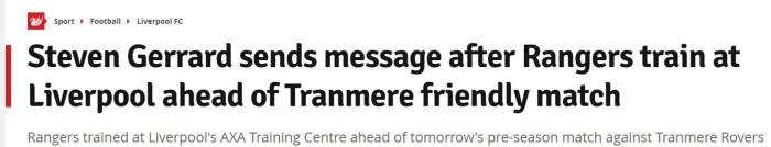 当地时间明天下午,杰拉德将率领格拉斯哥流浪者在默西塞德郡与特兰米尔流浪者进行一场热身赛,而凭借着杰拉德和利物浦紧密的关系,利物浦也将自己的训练基地借给流浪者队使用。