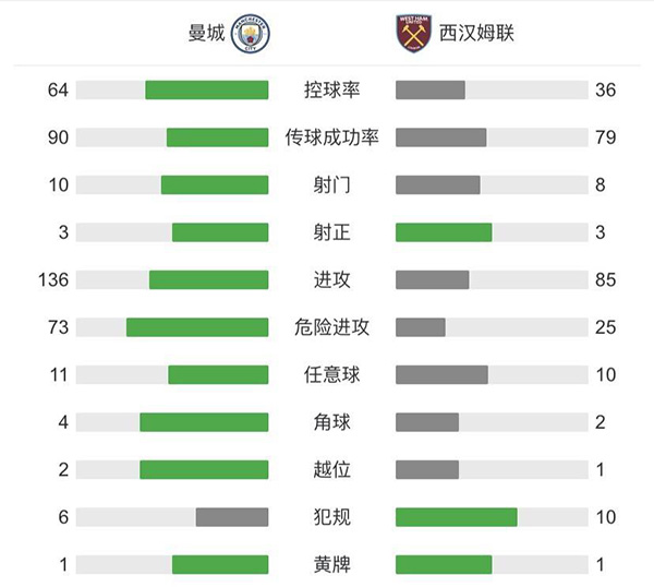 查看:曼城vs西汉姆 全场录像技术统计: