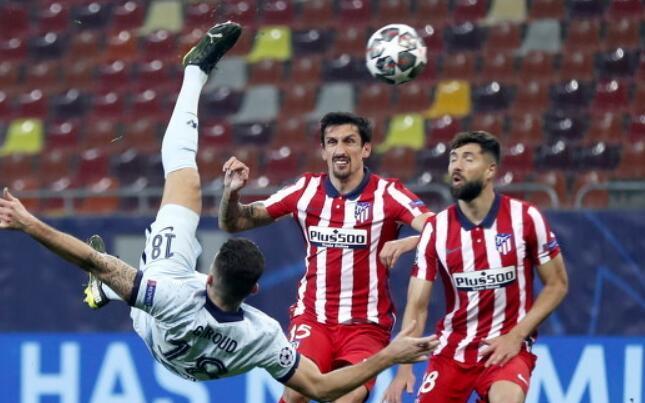 34岁的吉鲁在切尔西客场1-0战胜马竞的比赛中打进一粒精彩的倒钩球,双方目前还没有续约。本赛季,吉鲁的出场时间不算太多,但是效率出色,他在欧冠联赛中平均38分钟就能打进1球。