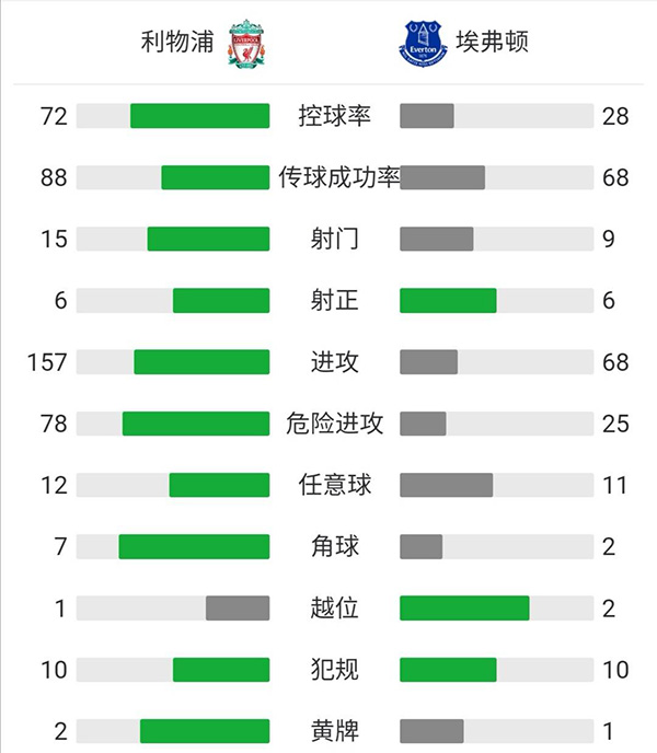 查看:利物浦vs埃弗顿 全场录像技术统计: