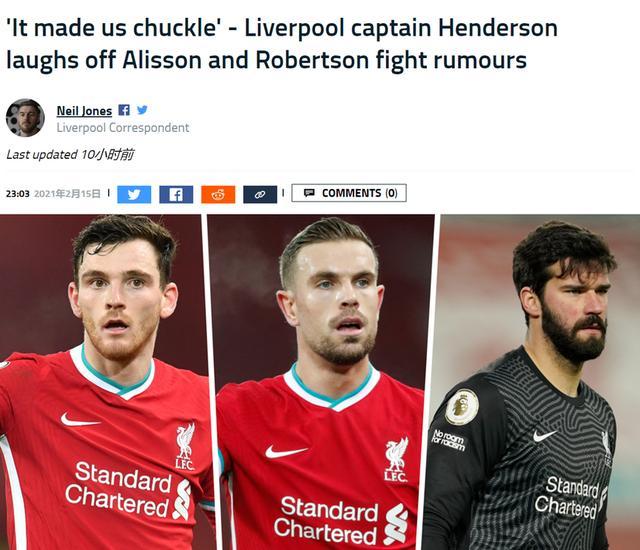 24直播网2月16日讯 利物浦队长乔丹-亨德森日前出席了球队的新闻发布会,他表示阿利松和罗伯逊在更衣室内爆发冲突的传闻是假消息。