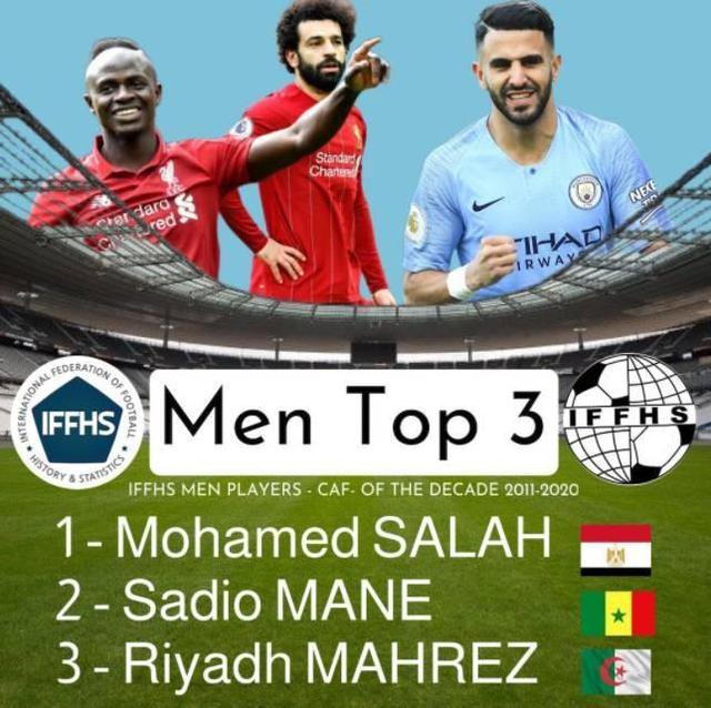 本次IFFHS评选的过去十年(2011-2020)非洲最佳球员前三名分别是: