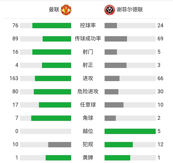 查看:曼联vs谢菲尔德联 全场录像技术统计: