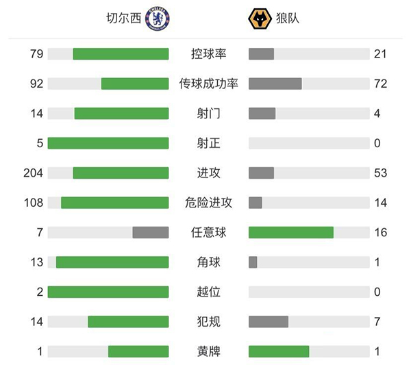 查看:切尔西vs狼队 全场录像技术统计: