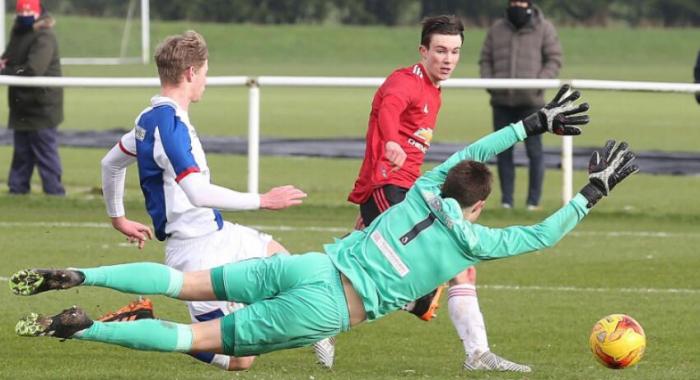 24直播网1月24日讯 在2021年的第一场比赛中,曼联U18青年队踢出了一场进球大战,最终客场4-3力克布莱克本。射手查理·麦克尼尔(Charlie McNeill)梅开二度,法国边锋诺姆·埃梅兰(Noam Emeran)进球,查理·萨维奇(Charlie Savage)第88分钟完成绝杀。