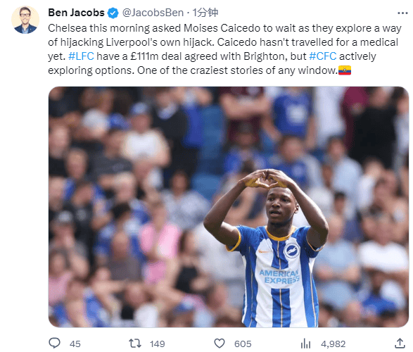 最大的问题是布莱顿是否会接受这一点,因为他们设定了周四晚上的投标截止日期,但金钱是万能的,对于布莱顿这样的小俱乐部来说,显然是价高者得。