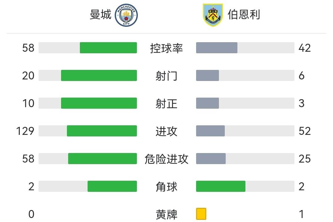 曼城6-0伯恩利 哈兰德连场戴帽小蜘蛛2射1传丁丁2助