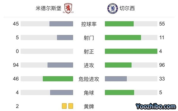 全场比赛结束,切尔西2-0击败米德尔斯堡,晋级四强。
