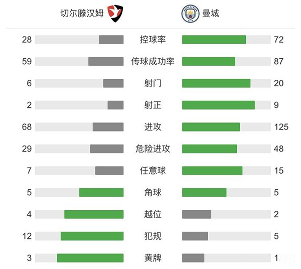 查看:切尔滕纳姆vs曼城 全场录像技术统计: